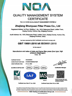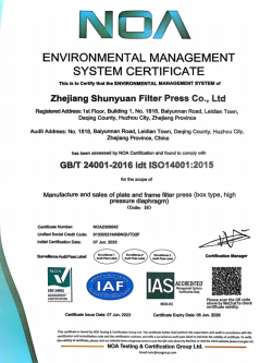 浙江順源壓濾機有限公司(原杭州順源過濾機械有限公司) 是一家具有自主設計開發和生產制造能力并吸收了國內外優秀同行廠家的產品優點、加工設備齊全、技術工藝成熟、實力雄厚、產品通過ISO900l質量體系認證的新型分離機械的專業生產公司。